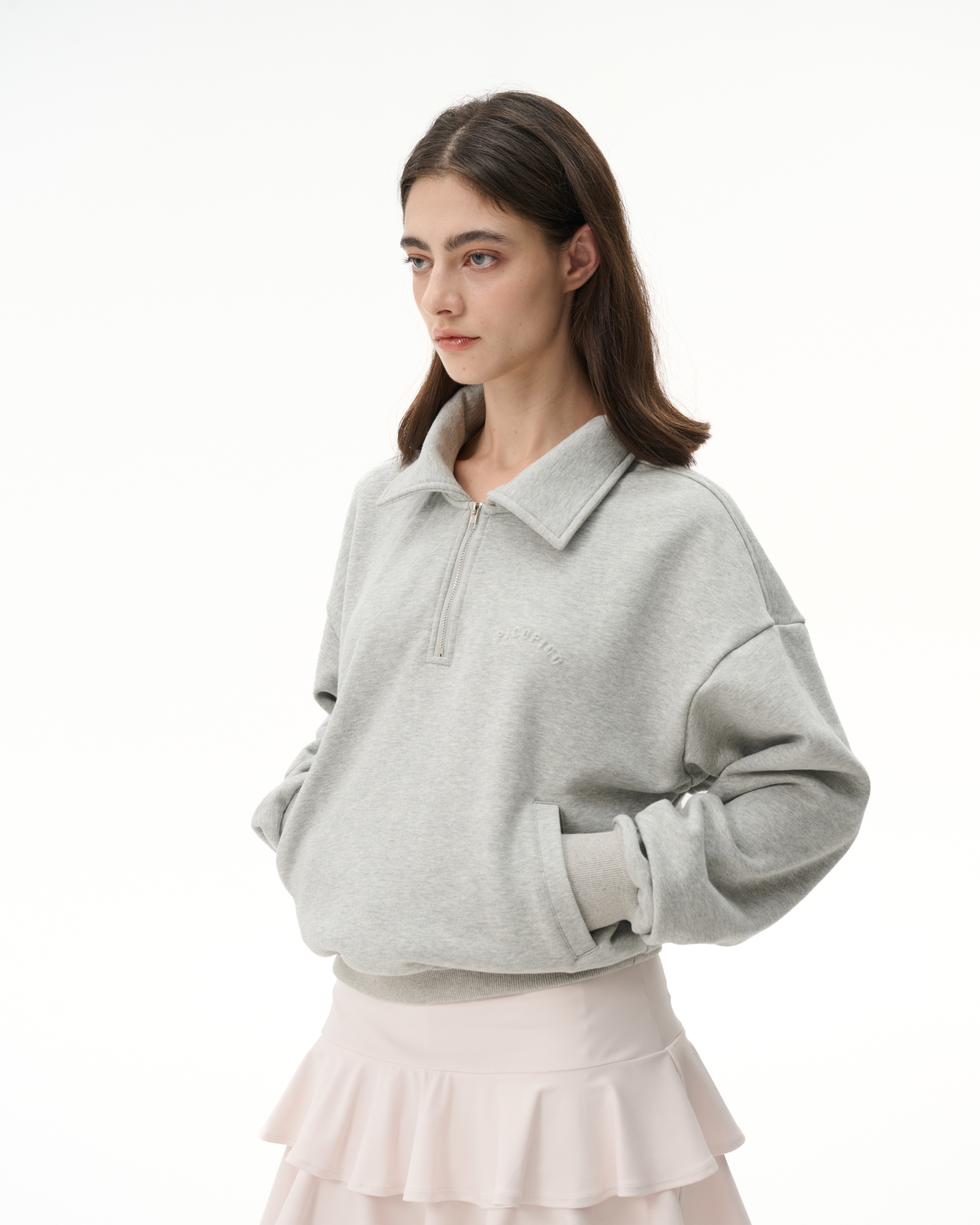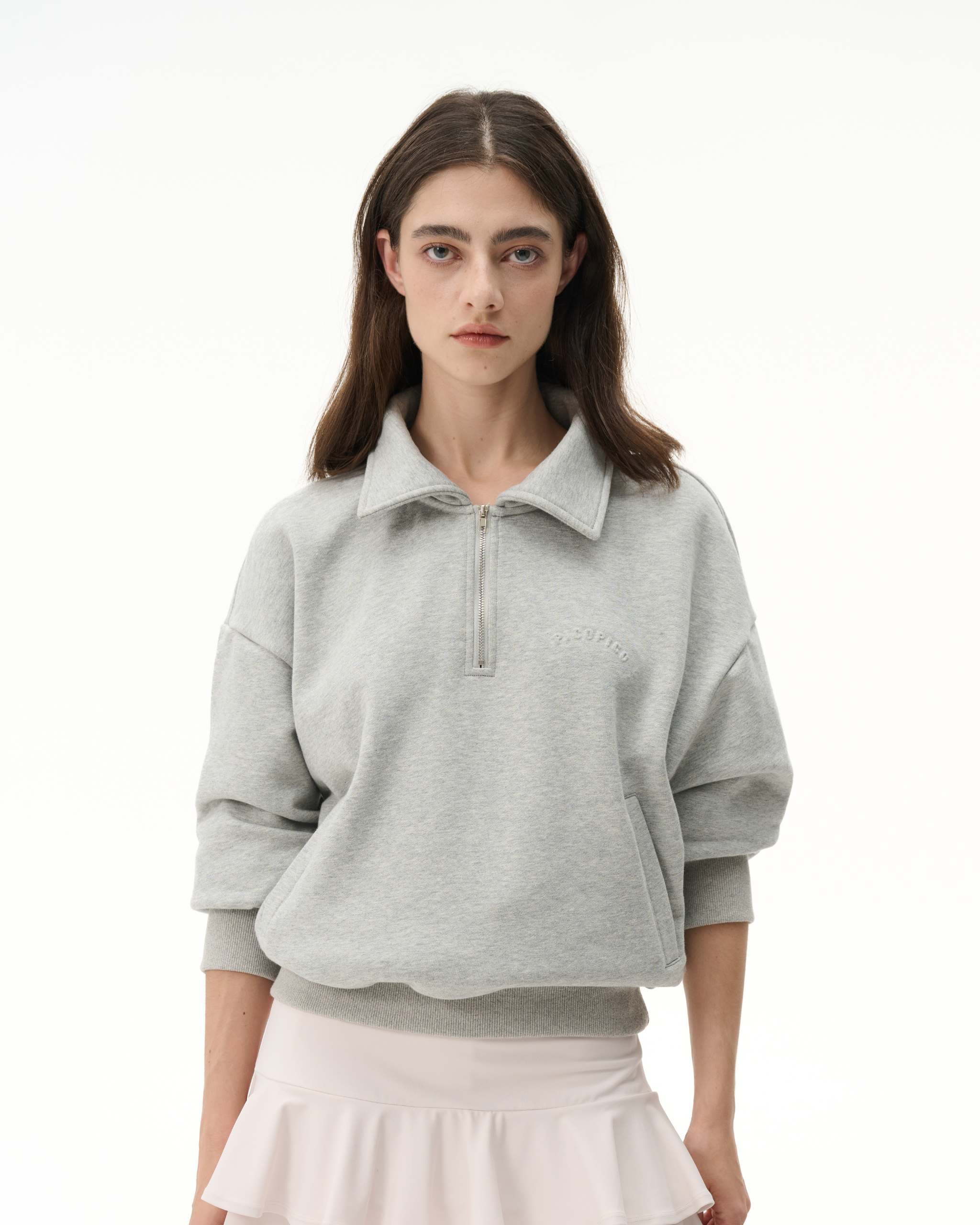 The Gliss Zip updates the quarter-zip with a large vintage-inspired collar, a metal zipper, and a tonal embossed logo for subtle detail. Its boxy, relaxed, cropped fit is designed to move between settings, with side pockets adding everyday functionality. Pair it with a pickleball skirt for play, or style it with leggings or denim for an elevated daily look.