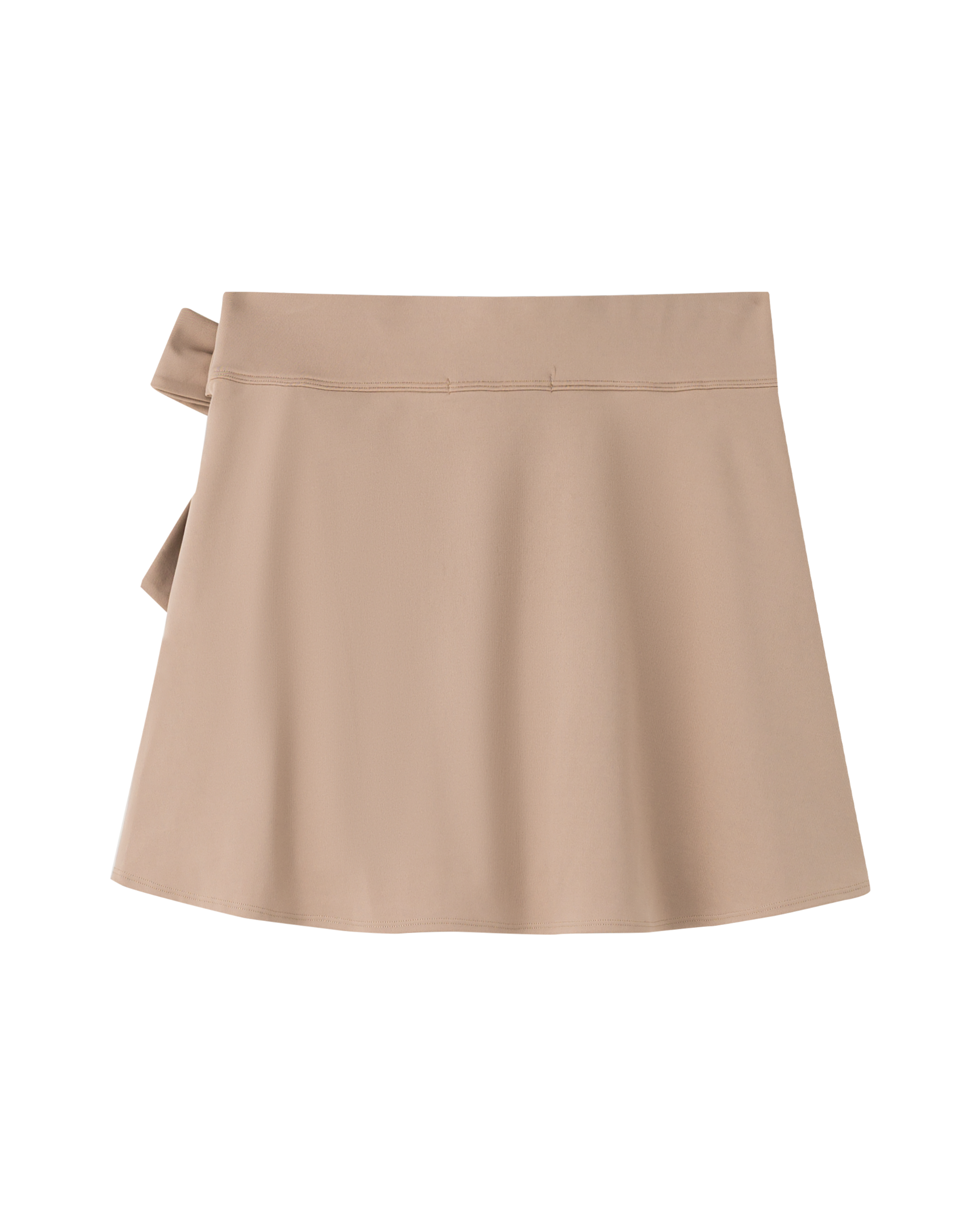 Cut in a relaxed, sporty fit with a wrapped front detail, the Knot Skirt creates natural movement and ease. Built-in shorts with pockets ensure coverage and utility. Fits true to size for a flattering drape. The model is 5’6 and wears a size S.