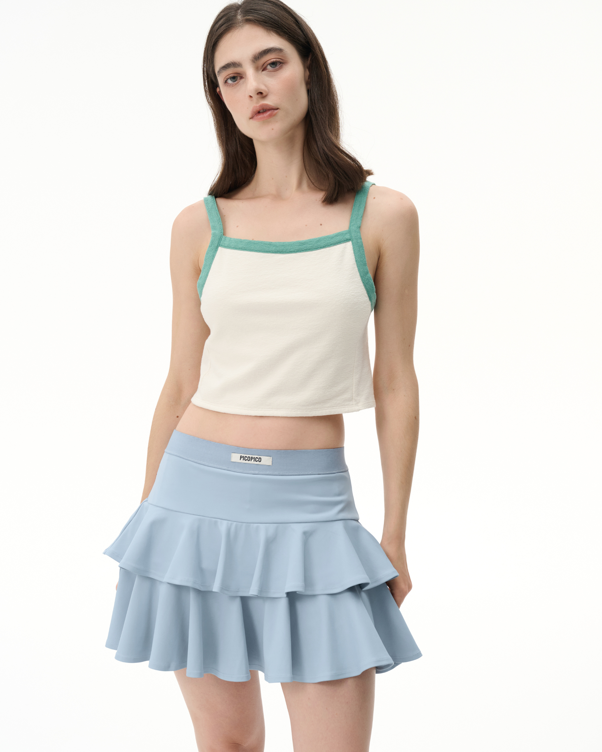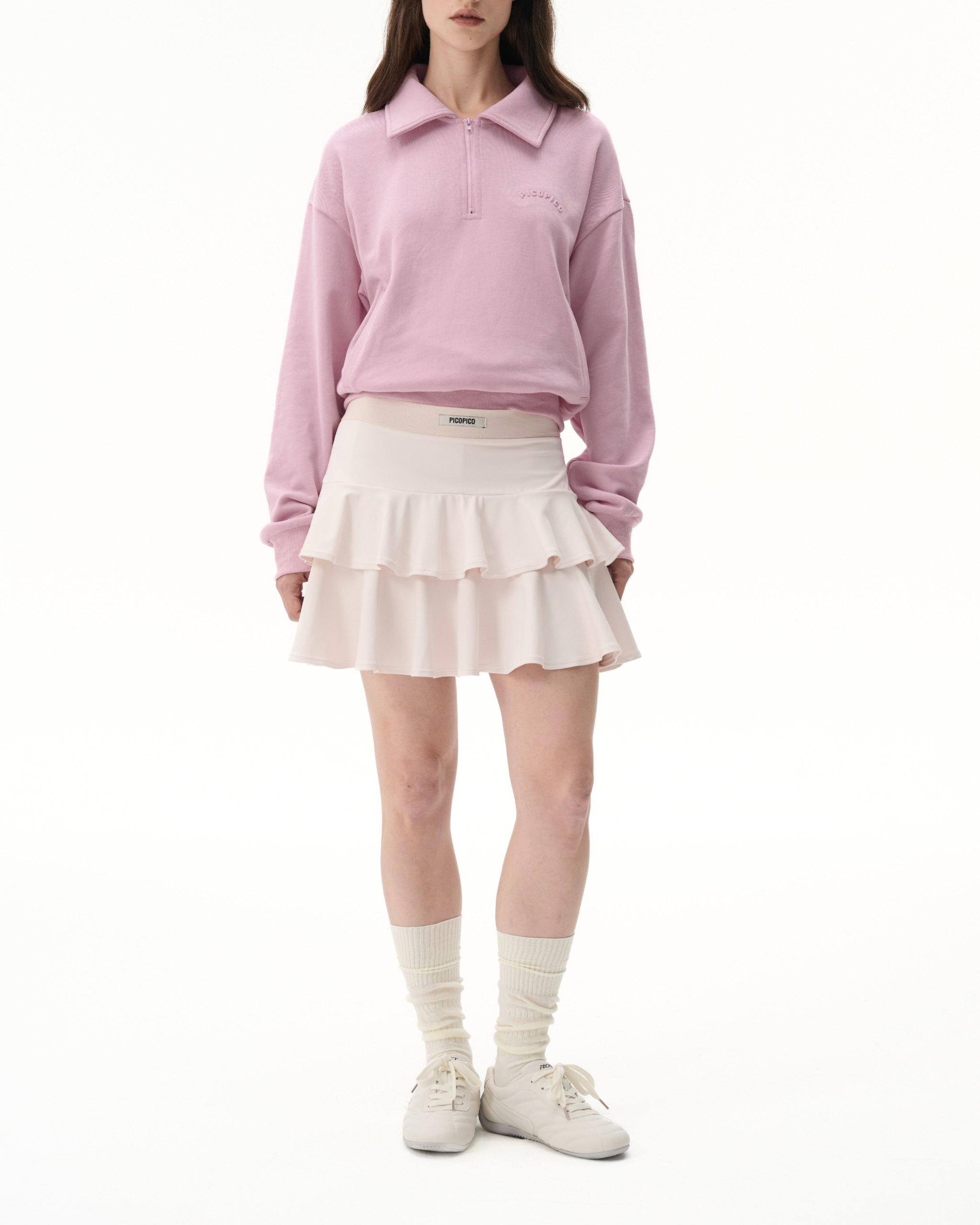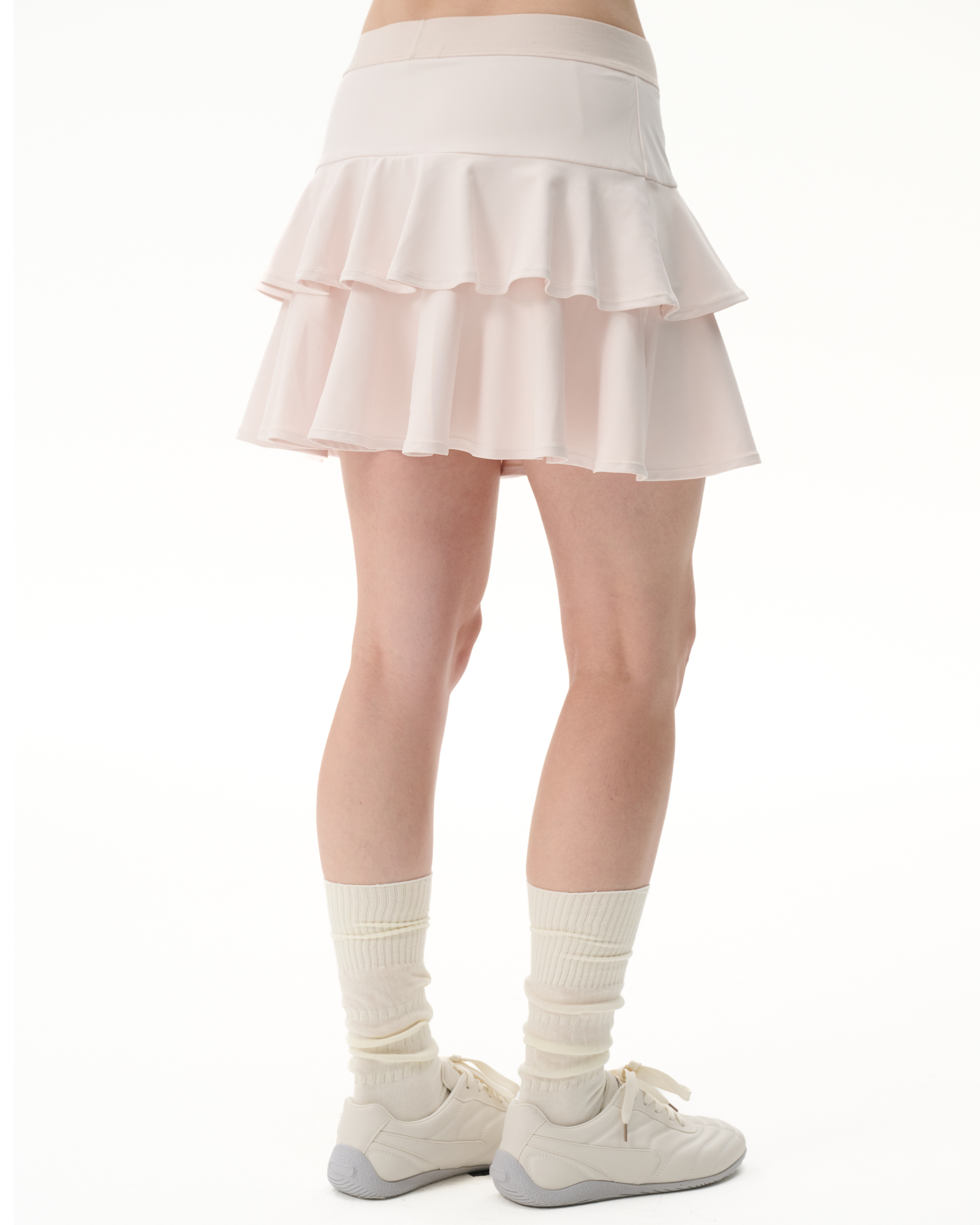 The Ripple Skirt takes its name from its ruffled flare silhouette, designed to bring a sense of movement and play into every step. Minimal in branding with a woven label at the waist, it balances sporty function with a softer, fashion-forward look. Built-in shorts with pockets add comfort and utility, making it as practical on the court as it is stylish in the city.
